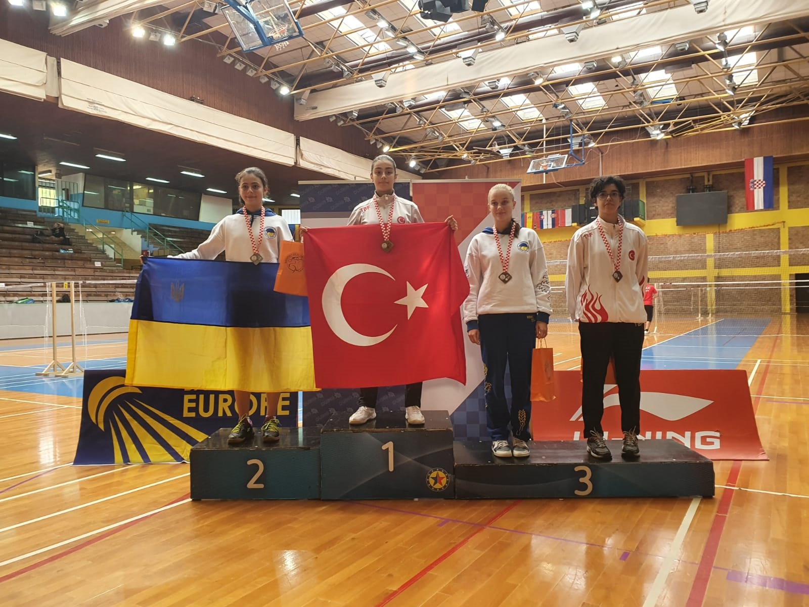 Erzincanlı sporcu Aleyna Korkut, Hırvatistan’ın Zagrep şehrinde 24-26 Eylül 2021 tarihlerinde U15 8th Lı-ning Zagrep Youth Open badminton turnuvasında hem tek bayanlarda hem de çift bayanlarda tüm rakiplerini yenerek iki altın madalya kazandı.