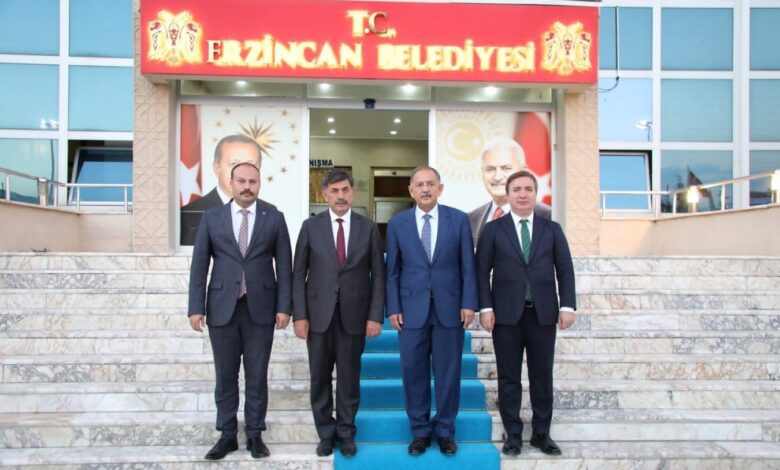 Bir dizi temel atma ve açılış programlarına katılmak üzere Erzincan’a gelen, Çevre Şehircilik ve İklim Değişikliği Bakanı Mehmet Özhaseki, Erzincan Valisi Doç. Dr. Hamza Aydoğdu ile birlikte Erzincan Belediyesine ziyarette bulundular.