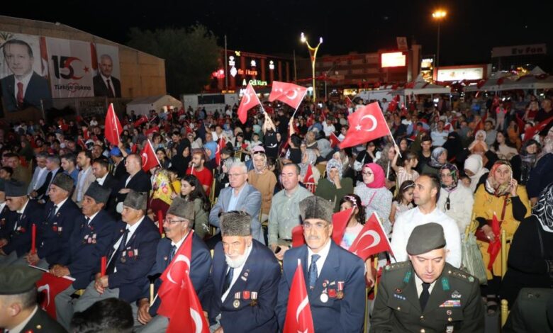 Konuşmaların ardından Cumhurbaşkanı Recep Tayyip Erdoğan’ın halka seslenişi, alana kurulan dev ekranda izlendikten sonra 3’ncü Ordu Bandosu konseri ve Erzincan Belediyesi Mehteran Ekibinin gösterisi ile devam eden program saatlerin 00:13’ü gösterdiği sırada tüm camilerden selaların okunması ile sona erdi.