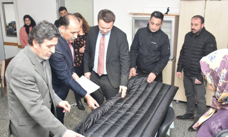 Vali Vekili Mehmet Deniz Arabacı ve beraberinde İl Milli Eğitim Müdürü Aziz Gün, halk eğitim merkezinde uyku tulumu diken kursiyerleri ziyaret ederek çalışmaları yerinde incelediler. Hafta sonuna kadar dikilecek olan 1030 adet uyku tulumu Valilik koordinesinde Hatay’daki afetzedelere gönderilecek.