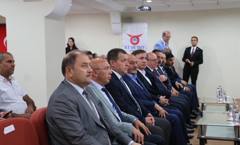 Et ve Süt Kurumu Genel Müdürlüğü, Tavukçuluk Sektörü Değerlendirme Toplantısını Erzincan’da Gerçekleştirdi. Et ve Süt Kurumu’nun ilk ve tek kombinasının bulunduğu Erzincan’da sektör temsilcilerinin sorunlarını dinledi. Erzincan Ticaret ve Sanayi Odası Toplantı Salonunda düzenlenen değerlendirme toplantısına Erzincan Valisi Doç. Dr. Hamza Aydoğdu, Erzincan Milletvekili Süleyman Karaman, Et ve Süt Kurumu Yönetim Kurulu Başkanı ve Genel Müdürü Mustafa Kayhan, Yönetim Kurulu Üyesi ve Genel Müdür Yardımcısı İbrahim Sarıtosun, Tarım ve Orman Bakanı Danışmanı Mücahit Taylan, AK Parti İl Başkanı Mehmet Cavit Şireci, Erzincan Tarım ve Orman İl Müdürü Murat Şahin, Erzincan Tavuk Kombinası Müdürü Naci Gün, birlik başkanları ve sektör temsilcileri katıldı.