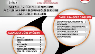 TÜBİTAK 2204/A Lise Öğrencileri Araştırma Projeleri Yarışması’nda 10 projeyle Bölge Finaline kalarak Erzincan’ı temsil edecekler. Bölge aşamasına katılmaya hak kazanan…