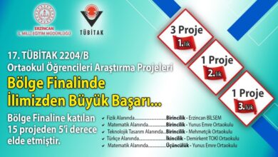 17. TÜBİTAK Ortaokul Öğrencileri Araştırma Projeleri Bölge Finalinde Erzincan’da 5 proje derece almaya hak kazanmıştır. 15 proje ile katılım sağlanan…