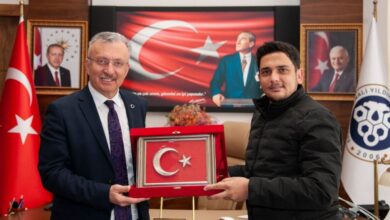 Gazi Piyade Komando Üsteğmen Kadir Erden, Erzincan Binali Yıldırım Üniversitesi Rektörü Prof. Dr. Akın Levent’i makamında ziyaret etti. Pençe Kilit…
