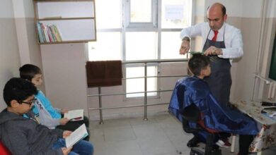 Gençlik yıllarında kuaför ağabeyinin yanında çalışan Şehit Pilot Teğmen Serkan Sağır İlkokulu Okul Müdürü Muammer Doğan, okuldaki öğrencileri kitap okumaya…