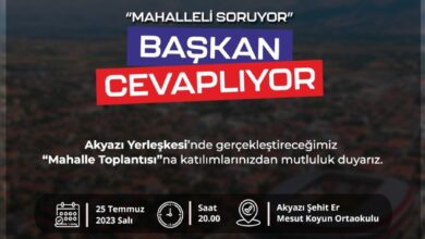 Belediye Başkanı Bekir Aksun “MAHALLELİ Soruyor, BAŞKAN Cevaplıyor” programları kapsamında bu hafta Akyazı Yerleşkesi sakinleri ile bir araya gelecek. Akyazı…