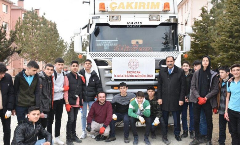 İl Millî Eğitim Müdürlüğü koordinesinde okullarda başlamış olunan yardım kampanyaları hız kesmeden devam etmekte. Ayni ve nakdi yardım kampanyalarına veliler, öğretmenler ve öğrenciler büyük bir dayanışma ruhu ile katkı yapmakta. Bu vesile ile toplanan yardım malzemeleri ile dolu yeni bir tır daha Hatay’a uğurlandı. Milli Eğitim Müdürlüğü koordinesinde, depremden etkilenen illere bugüne kadar 5 tır insani yardım malzemesi ulaştırıldı. 27.02.2023 Pazartesi günü 6. yardım tırını ihtiyaç sahibi vatandaşlara ulaştırılmak üzere Hatay iline uğurlandı. İl Millî Eğitim Müdürü Aziz Gün’ün bizzat katıldığı yükleme işlemlerine Erzincan Anadolu İmam Hatip Lisesi öğrencileri gönüllü olarak destek oldular. İl Millî Eğitim Müdürü Aziz Gün, Cumhuriyet tarihinin en büyük afetlerinden olan ve 11 ili etkileyen depremle ilgili velilerimizin, öğrencilerimizin, eğitim camiamızın tüm paydaşlarının göstermiş olduğu hassasiyet ve duyarlıktan dolayı müteşekkir olduğunu ifade etti.