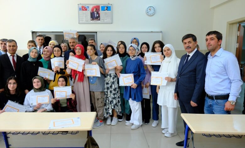 Belediye Başkanı Bekir Aksun, Erzincan Valisi Mehmet Makas, İl Milli Eğitim Müdür Vekili Murat Demir, İdareci ve Öğretmenlerin katılımları ile Demirkent Terzibaba İmam Hatip Ortaokulunda düzenlenen programda öğrencilere karneleri verildi.