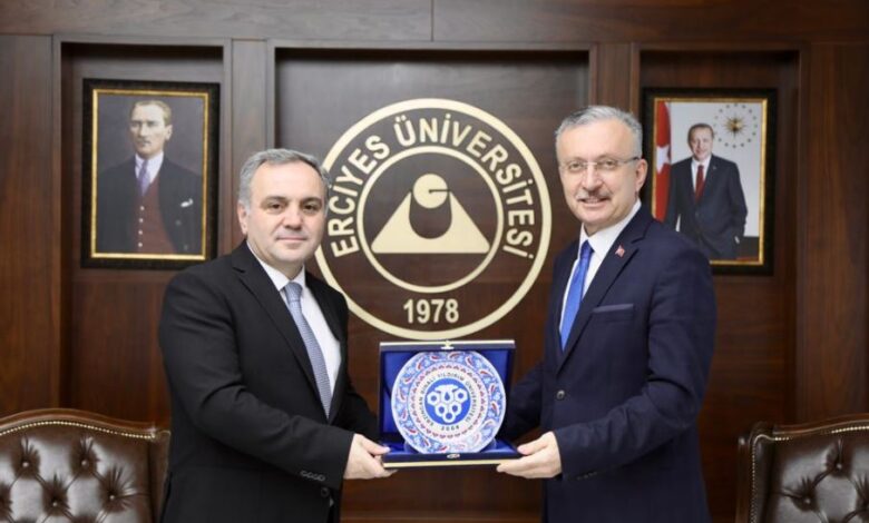 Erzincan Binali Yıldırım Üniversitesi Rektörü Prof. Dr. Akın Levent Anadolu Üniversiteler Birliği (AÜB) Üniversite Tanıtım ve Tercih Fuarı kapsamında Erciyes Üniversitesi Rektörü Prof. Dr. Fatih Altun’u makamında ziyaret etti.