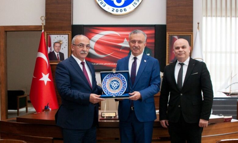 Giresun Üniversitesi Rektörü Prof. Dr. Yılmaz Can ve Rektör Yardımcısı Prof. Dr. Güven Özdem Erzincan Binali Yıldırım Üniversitesi Rektörü Prof. Dr. Akın Levent’i makamında ziyaret etti. Giresun Üniversitesi Rektörü Prof. Dr. Yılmaz Can ve Rektör Yardımcısı Prof. Dr. Güven Özdem Üniversite Rektör Prof. Dr. Akın Levent’e nezaket ziyaretinde bulundu. Nazik ziyaretlerinden dolayı Rektör Levent teşekkürlerini iletti. Karşılıklı sohbetin ardından ziyaret sona erdi.
