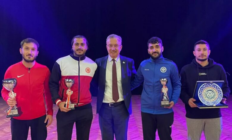 Üniversite Prof. Dr. Erdoğan Büyükkasap Kongre ve Kültür Merkezinde gerçekleştirilen ödül törenine Rektör Prof. Dr. Akın Levent, Rektör Yardımcıları Prof. Dr. A. Ercan Ekinci, Prof. Dr. Adem Başıbüyük, Prof. Dr. Çağrı Çırak, Genel Sekreter Doç. Dr. M. Cihat Özgenel ve TÜSF Temsilcisi Spor Bilimleri Fakültesi Dekanı Prof. Dr. Murat Şat katıldı.