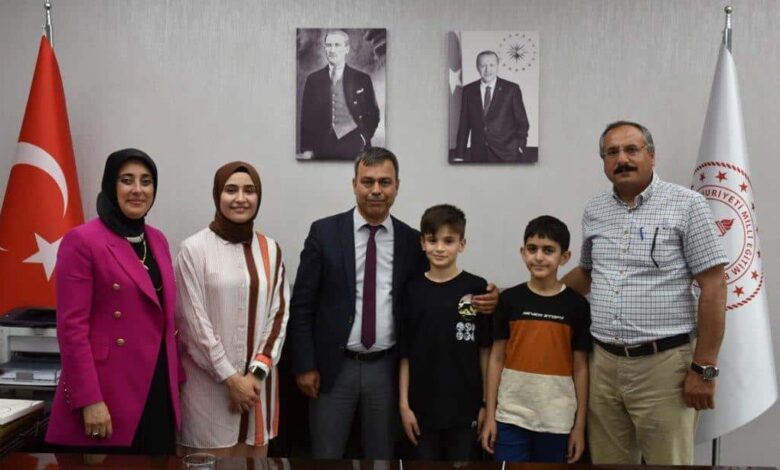 İl Millî Eğitim Müdür Vekili Murat Demir, TÜBİTAK 17. Ortaokul Öğrencileri Araştırma Projeleri Yarışması Türkiye Finalinde Erzincan’ı başarı ile temsil eden danışman öğretmen Esila Samur ve öğrenciler Emir Özdemir, Fuat Kayra Kurttepe’yi makamında kabul ederek başarılarından dolayı tebrik ederek hediye takdiminde bulundu.
