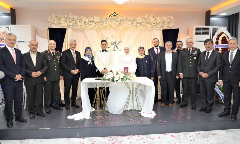 Kadir Erden ve Gülizar Çiftçi’nin nikah şahitliğini de yapan Vali Mehmet Makas, Gazi Piyade Komando Üsteğmen Kadir Erden ve Gülizar Çiftçi’yi tebrik ederek ömür boyu mutluluklar diledi.