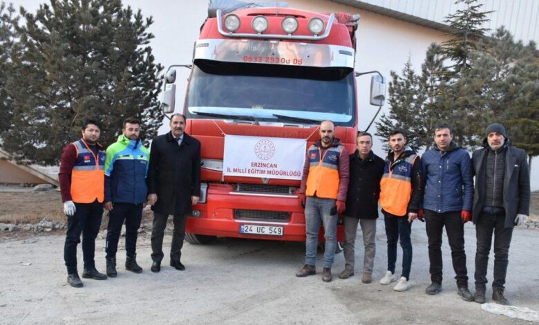 Depremin yaşandığı ilk andan itibaren Erzincan eğitim camiasının mensupları veliler, öğretmenler, öğrenciler, eğitim yöneticileri ve tüm vatandaşlar güçlü bir dayanışma örneği gösterdi. Malatya, Kahramanmaraş ve Adıyaman’a gönderilen 3 tır yardım malzemesinin ardından gıda, battaniye ve hijyen malzemelerinden oluşan 4. yardım tırı dualarla Malatya’ya uğurlandı.