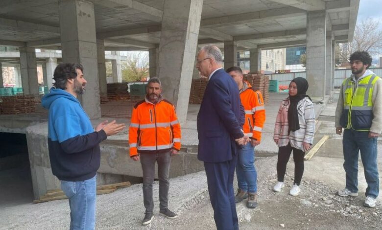 Erzincan Merkez 13 Şubat Caddesi’nde yapımı devam Yaşam Merkezi inşaat alanını ziyaret eden Rektör Levent, İnşaat alanında incelemelerde bulunarak yapılan çalışmalar hakkında yetkililerden bilgi aldı.