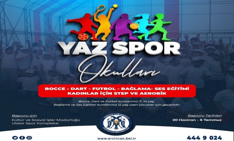 Erzincan Belediyesi tarafından çocukların fiziksel, bilişsel, duygusal gelişimlerine katkı sunmak ve keyifli bir tatil geçirmelerini sağlamak amacıyla Yaz Spor Okulları açılıyor. Ayrıca Ulalar Spor Kompleksinde kadınlara yönelik olarak Step ve Aerobik dersleri de verilecek.