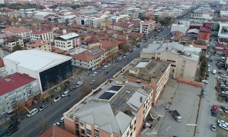 Kentsel dönüşüm projesi kapsamında acele kamulaştırma kararı alınarak kamulaştırılan, Kızılay Mahallesi, Halitpaşa Caddesi Üzerinde yer alan vatandaşlar tarafından Eski Emniyet Çarşısı olarak bilinen ve 2 bloktan oluşup 2300 m2 arsa üzerinde bulunan, Yeni Şehir Esnaflar Çarşısında yıkım çalışmaları başladı.